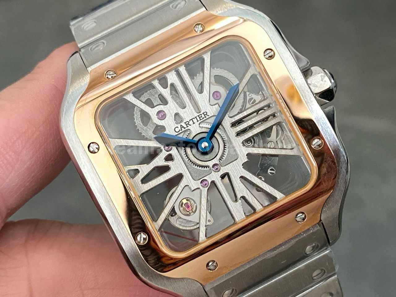 The THB factory has carefully replicated the Cartier Santos Skeleton Steel Strap series, achieving a high level of accuracy in appearance, craftsmanship, and details compared to the original. The unique skeleton design paired with a high-end movement delivers an exceptional mechanical aesthetic for the wearer.