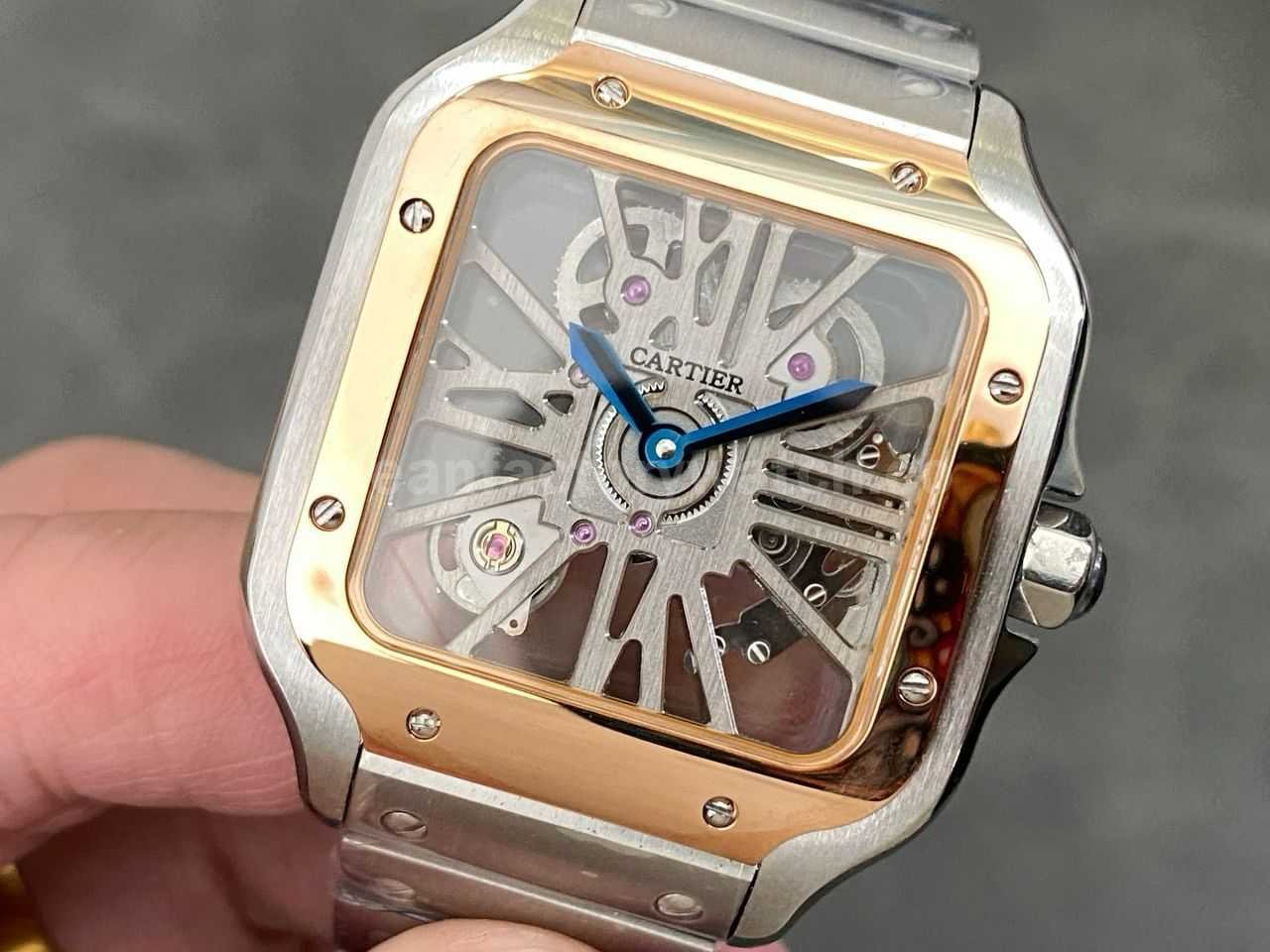 This THB factory Cartier Santos Skeleton Watch exemplifies high-end replica standards, with a stable movement, skeleton craftsmanship, and quick-release strap design. It is an ideal choice for watch enthusiasts who prioritize both quality and aesthetics.