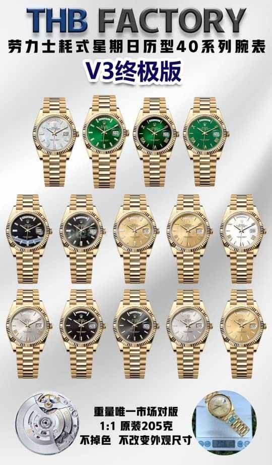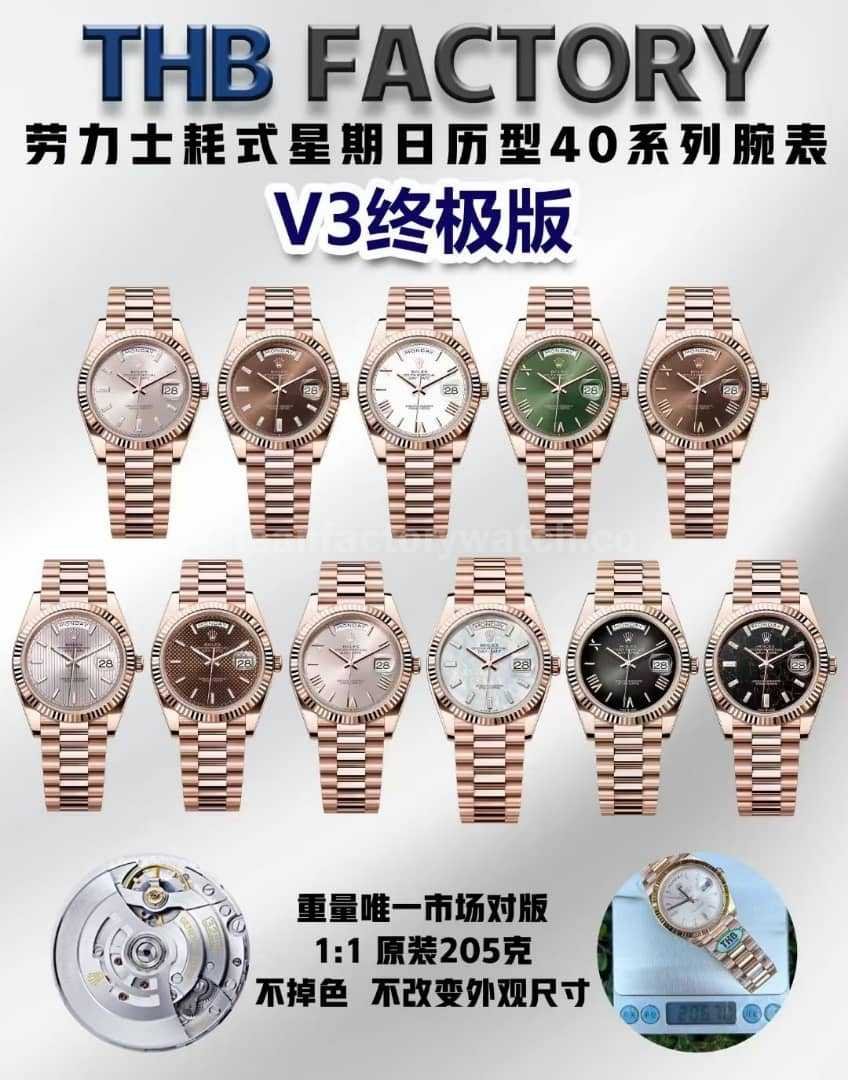 THB Factory proudly presents the Rolex Day-Date V3 Ultimate Edition, the only version on the market that truly achieves original case size, authentic weight (205g), and flawless details.