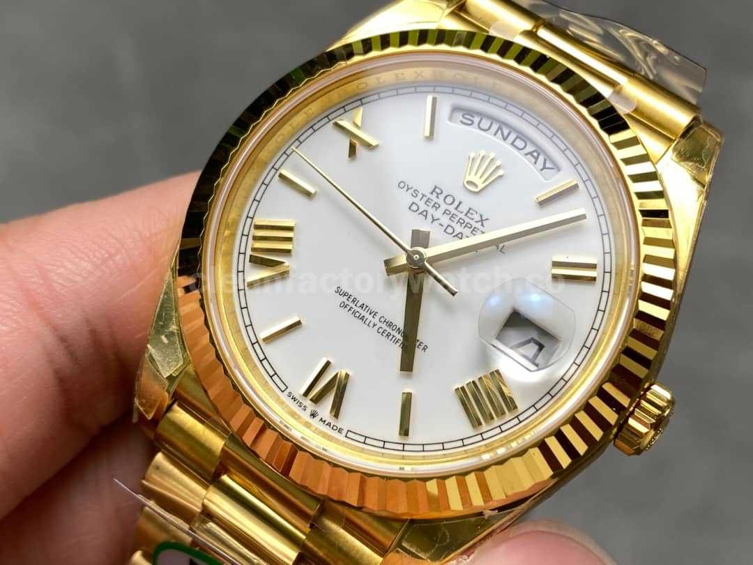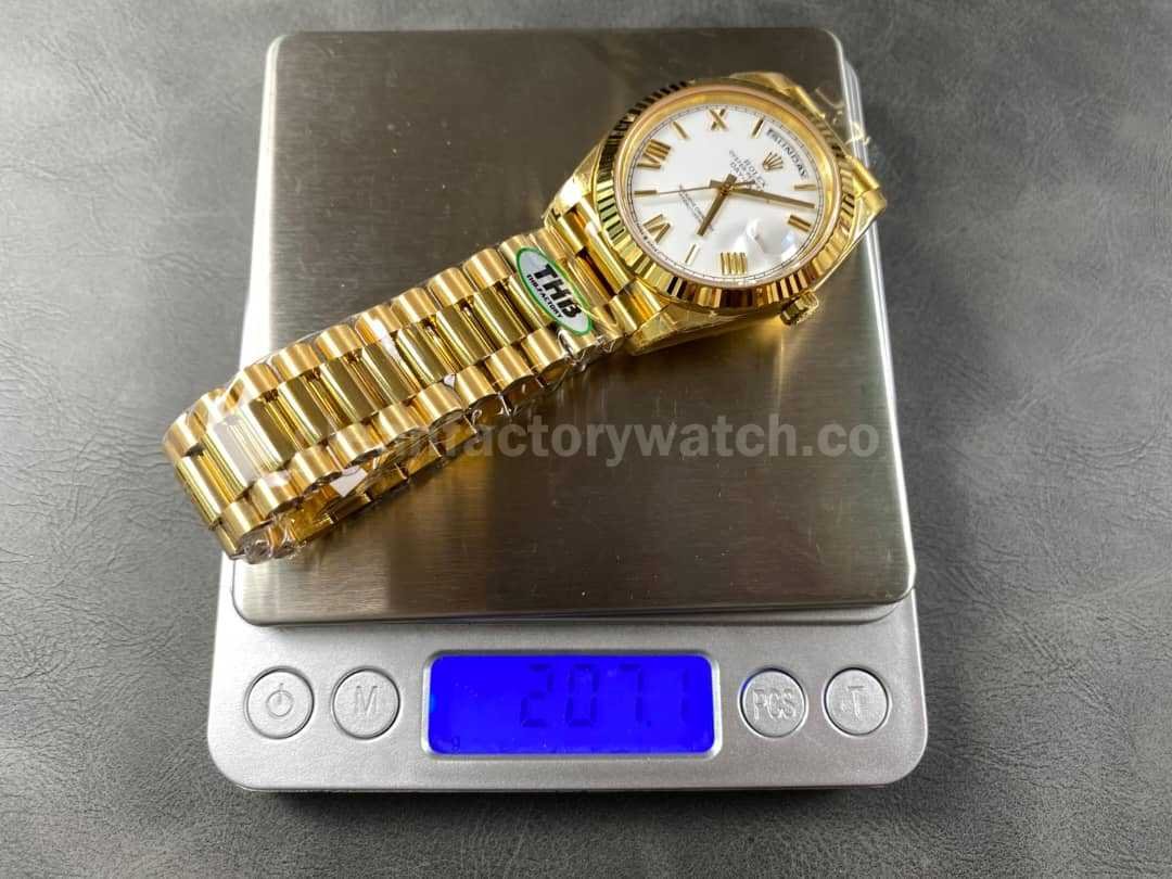 THB Factory Counterweight Rolex Day-Date 228238-0042 40mm Full Yellow Gold Roman Numerals White Dial
