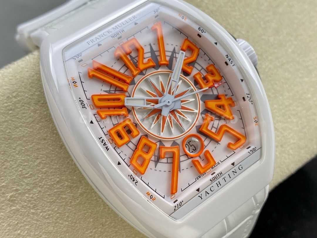 T+plus Factory Franck Muller V45 Yacht Limited Edition 45mm White Ceramic Rubber Strap Orange Arabic Numerals White Dial