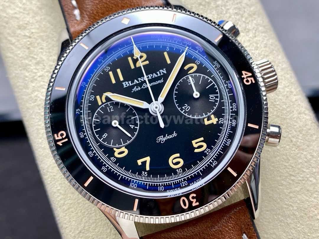 TW Factory Blancpain Air Command AC02 Chronograph Watch is a highly appealing vintage-style chronograph that perfectly combines the military aviation watch design of the 1950s with modern haute horology. Here are some key highlights: