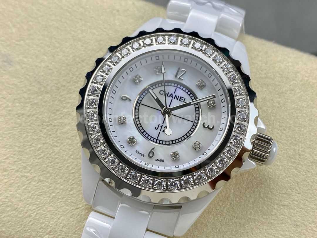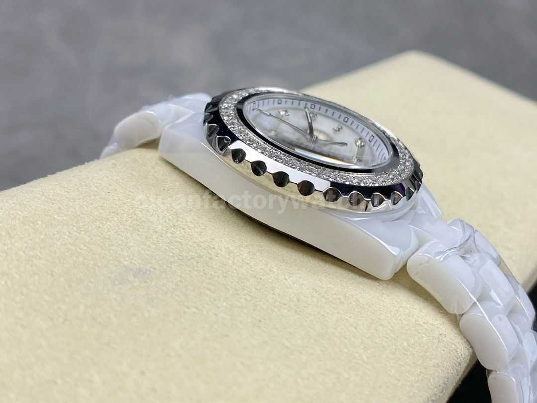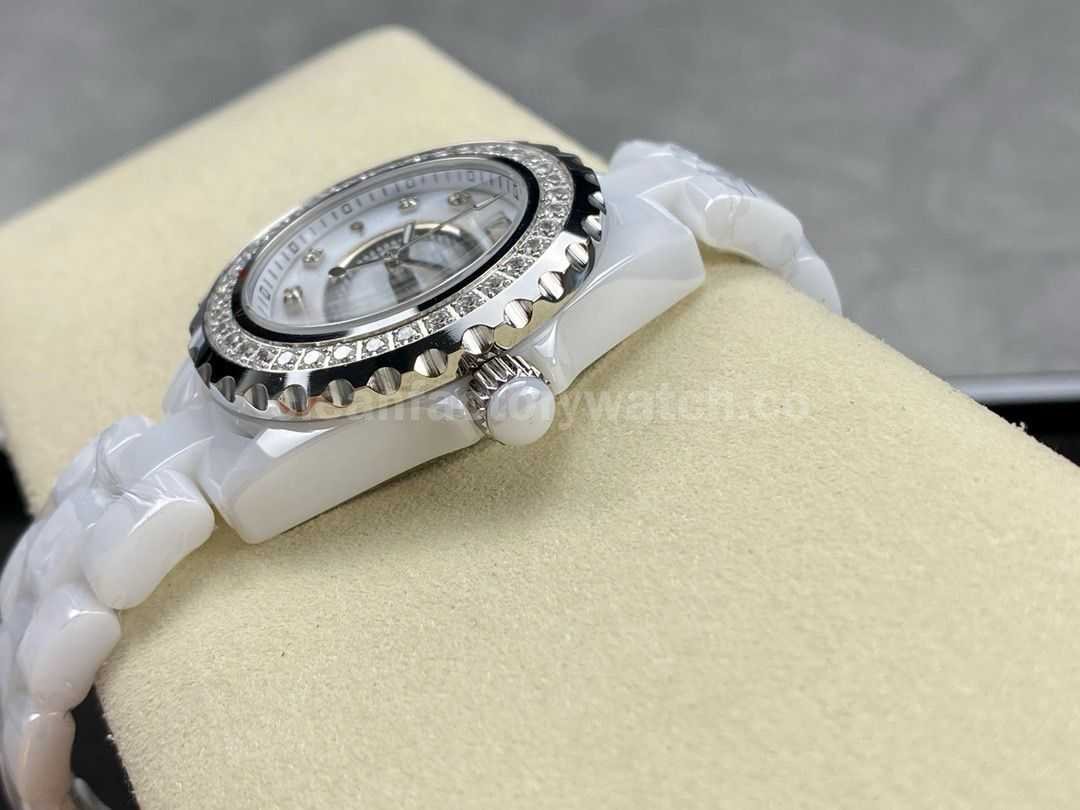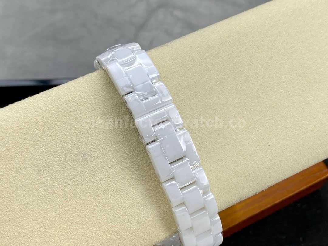 TW Factory Chanel Quartz J12 H3110 33mm Diamond Bezel Full White Ceramic Diamond Arabic Numerals White Dial