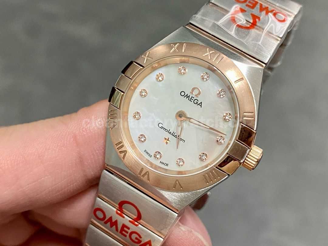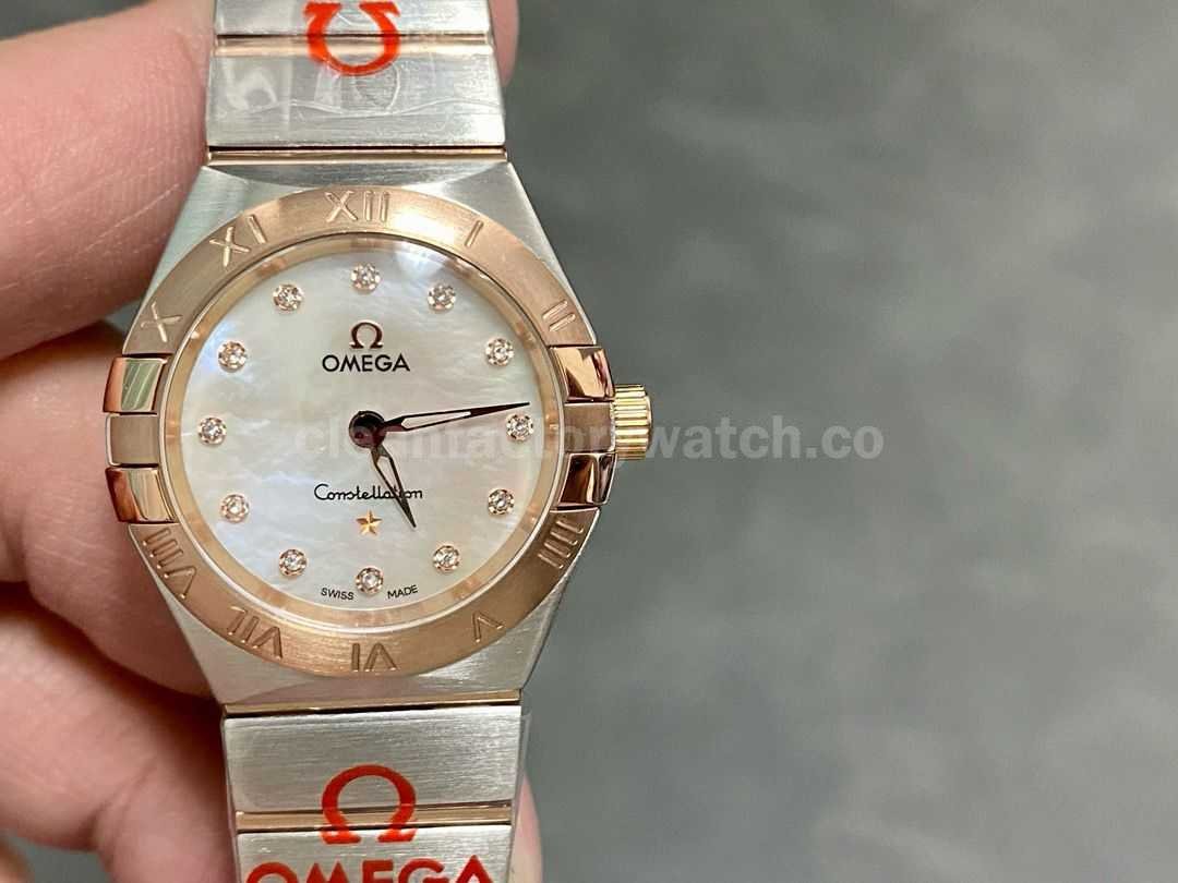 TW Factory Omega Constellation Quartz 123.20.27.60.55.001 27mm Roman Number Rose Gold Bezel Half Rose Gold Steel Diamond Mother Of Pearl Dial