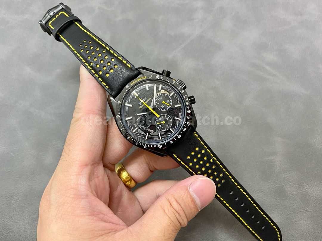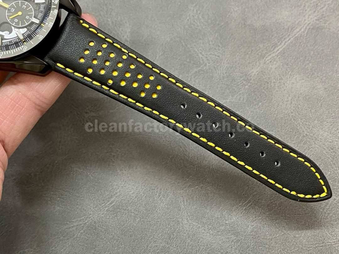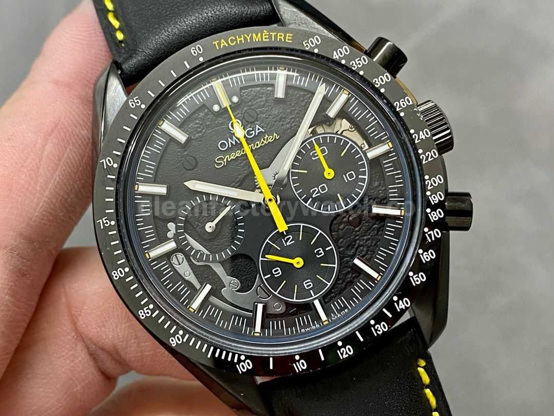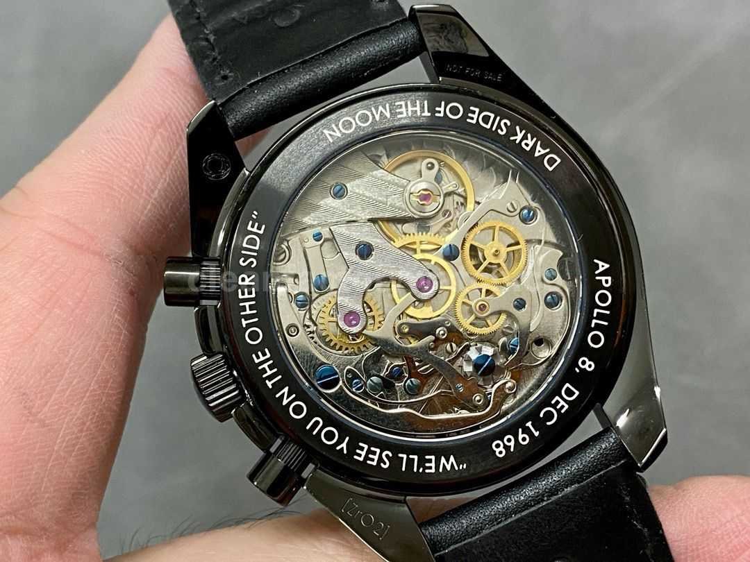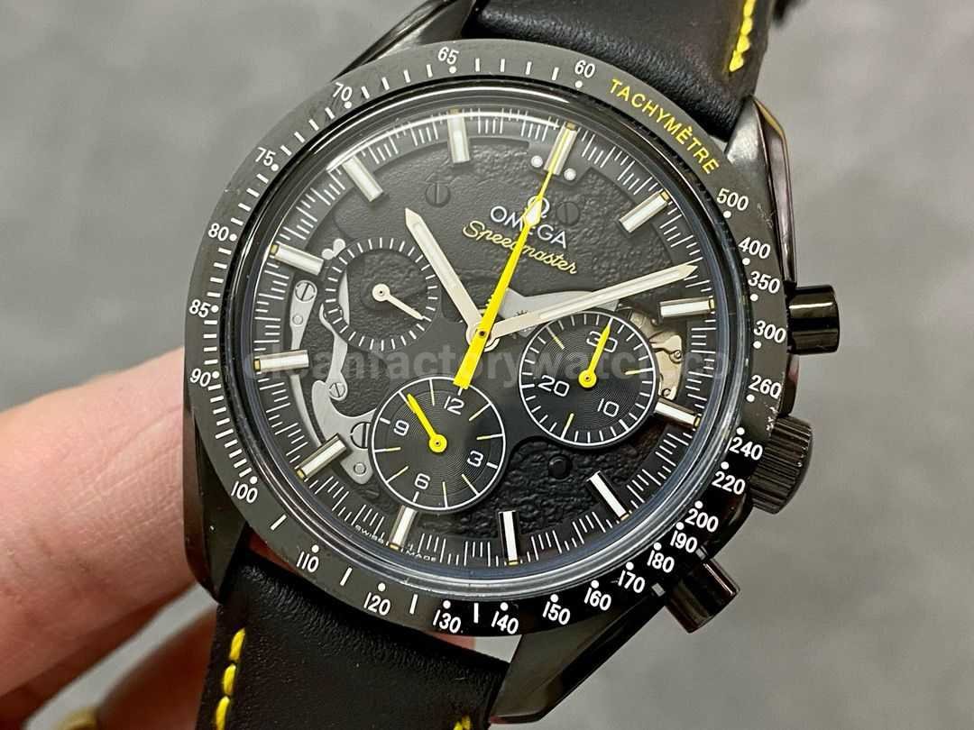 TW Factory Apollo 8 replica excels in material quality, finishing, and detail accuracy. It visually almost identical to the genuine version and offers an excellent wearing experience. Especially noteworthy are the skeletonized lunar engraving and the striking black-and-yellow color theme, making it very appealing for Speedmaster enthusiasts.