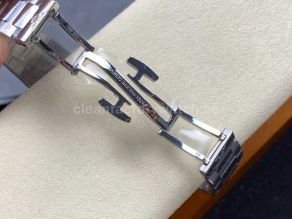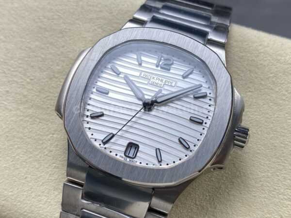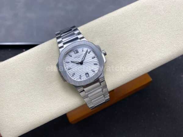 Measuring 35.2mm, the Nautilus case features distinctive side contours. The bracelet showcases a harmonious blend of brushed and polished surfaces, with each edge finely chamfered and polished into a smooth arc. The integration between lugs and bracelet is seamless, ensuring a comfortable and elegant fit on the wrist.