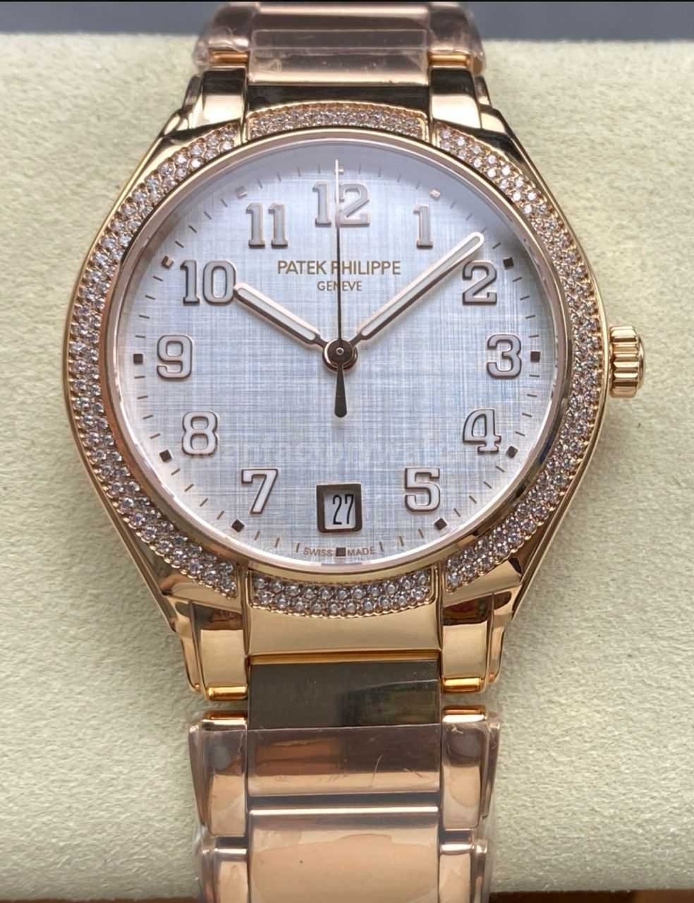 TW Factory Patek Philippe Twenty~4 7300/1201R-001 Rose Gold Diamond Bezel Arabic Numerals White Dial