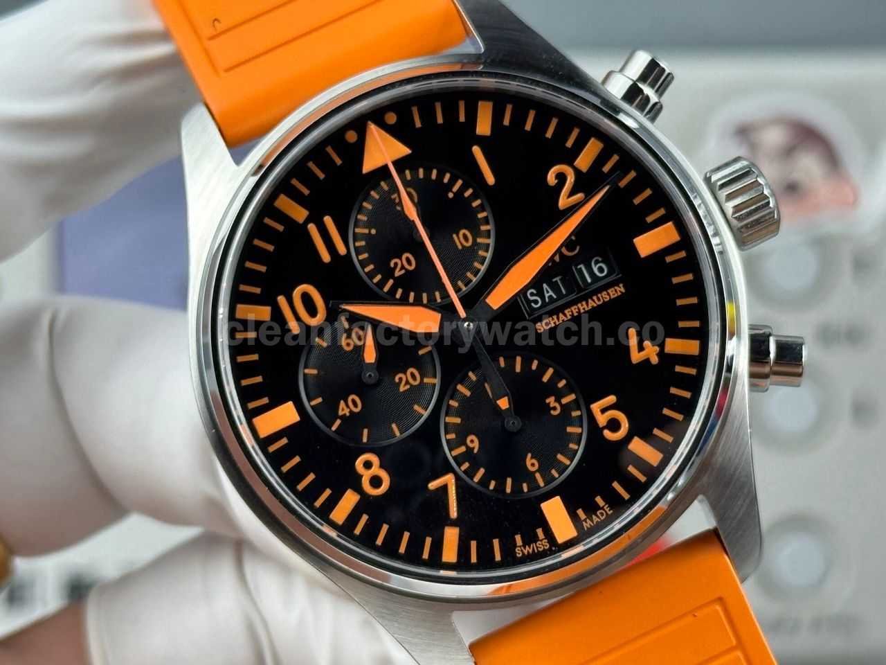 TWS Factory IWC Pilot Chronograph IW377730 41mm Orange Rubber Strap Orange Arabic Numerals Black Dial