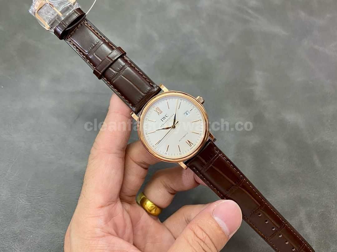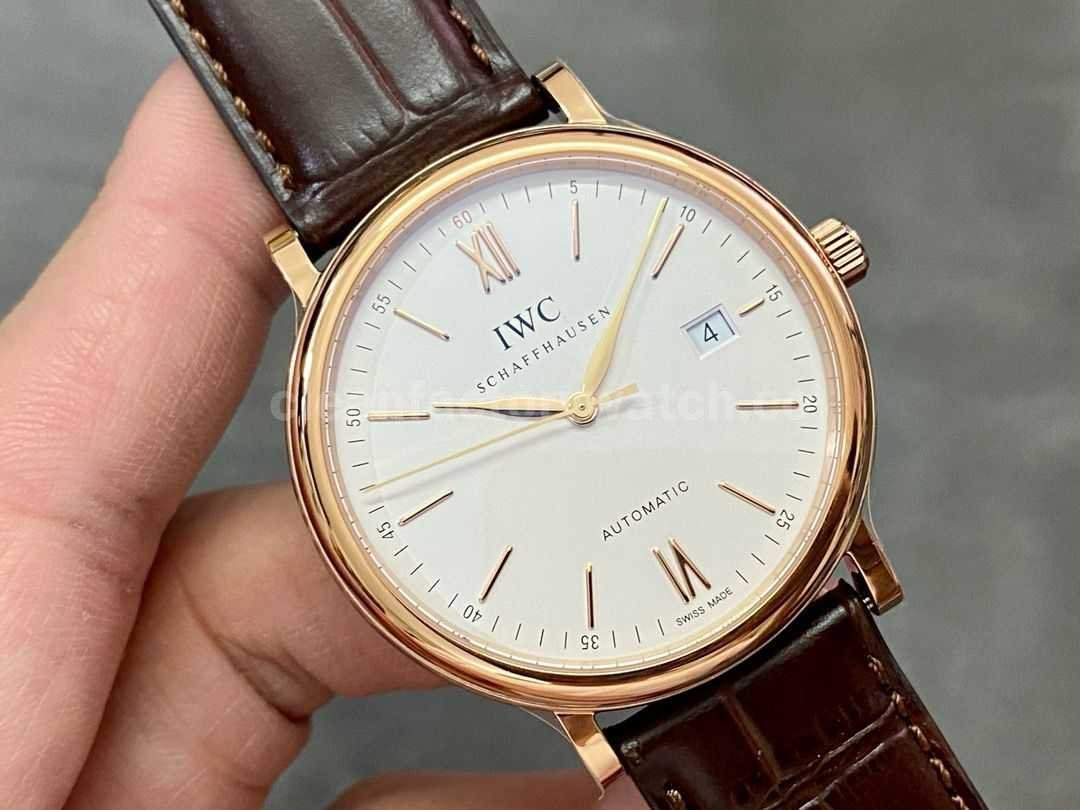 V7 Factory IWC Portofino Automatic IW356302 40mm Rose Gold Leather Strap Roman Numerals White Dial
