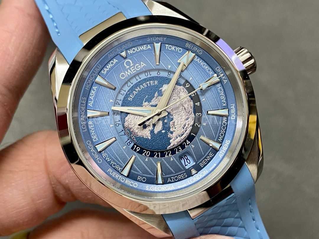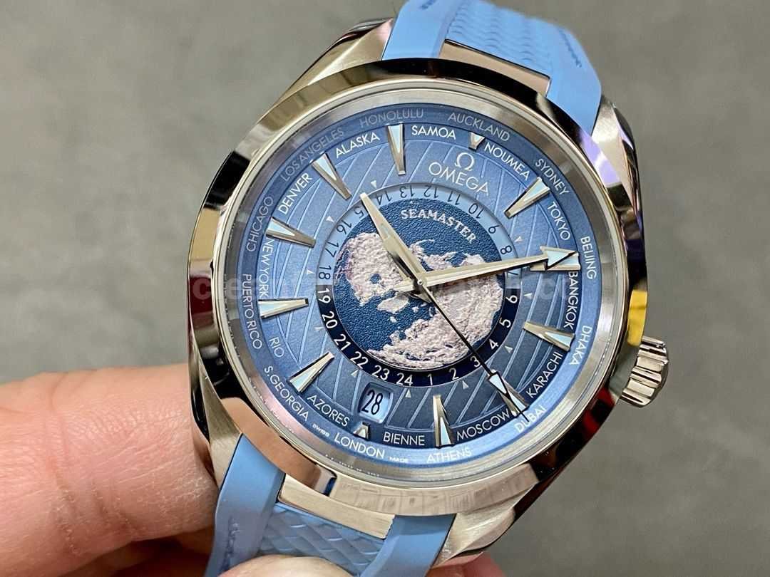 VS Factory Omega Seamaster Aqua Terra Worldtimer Master Chronometer Gmt 220.12.43.22.03.001 Steel Rubber Strap Blue Dial