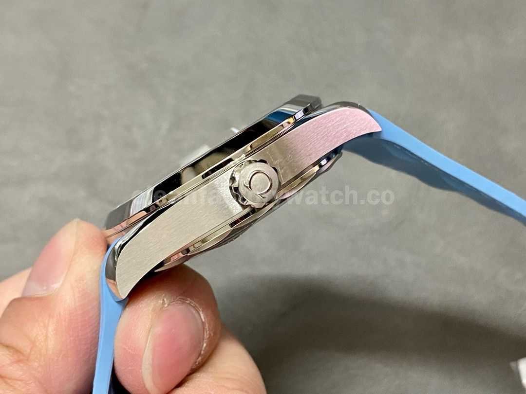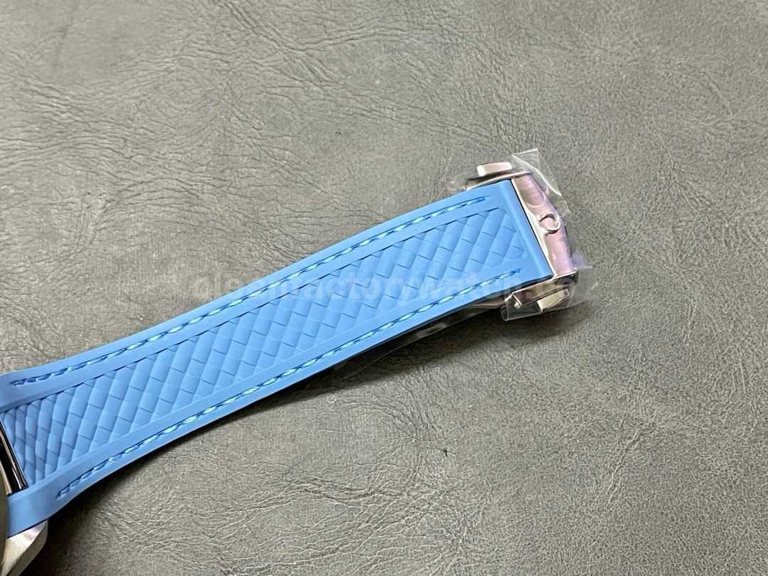 * Blue Rubber Strap: Textured rubber strap in matching blue tone complements the dial, offering a balance of sporty and elegant aesthetics with comfortable wear.
