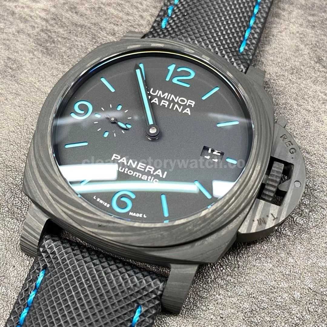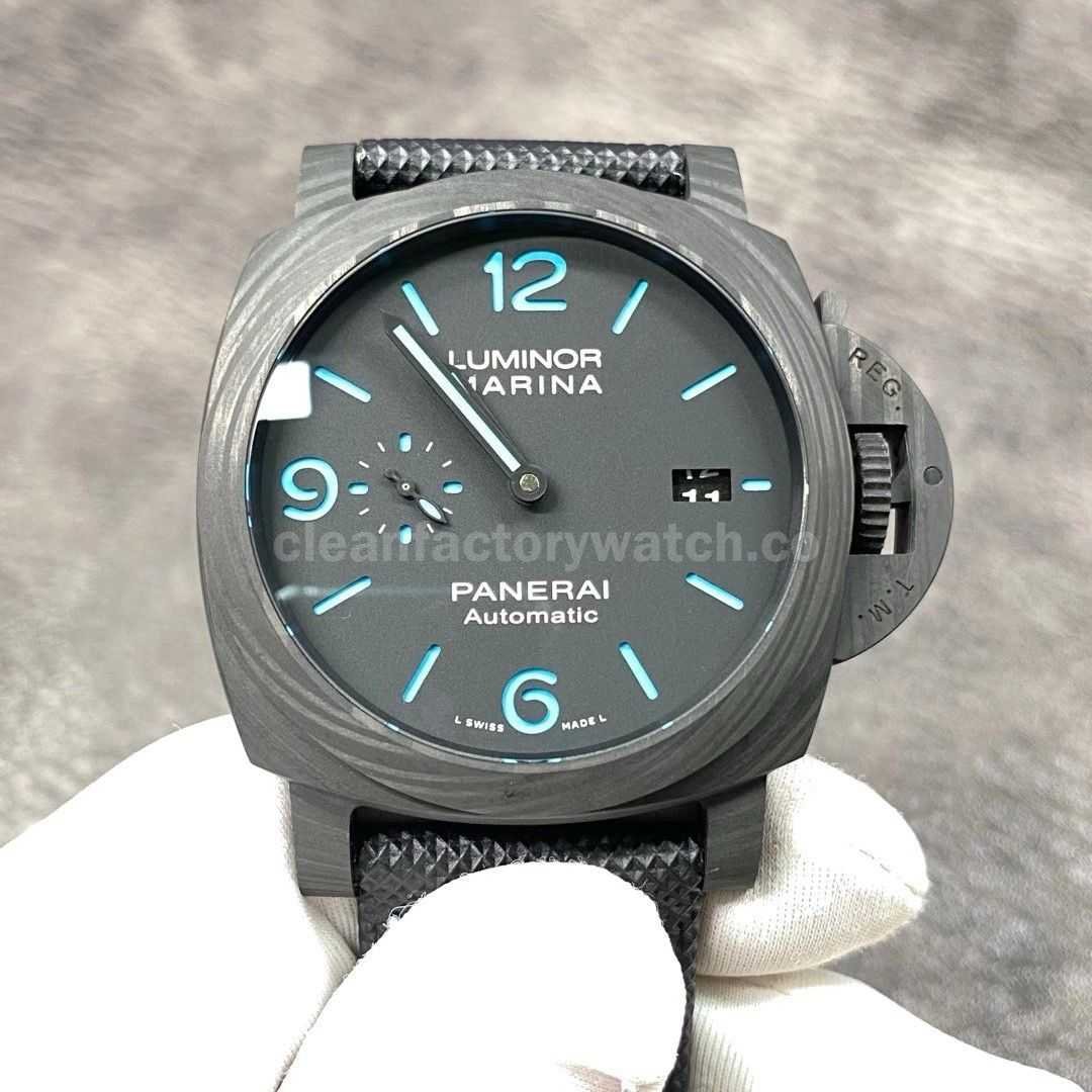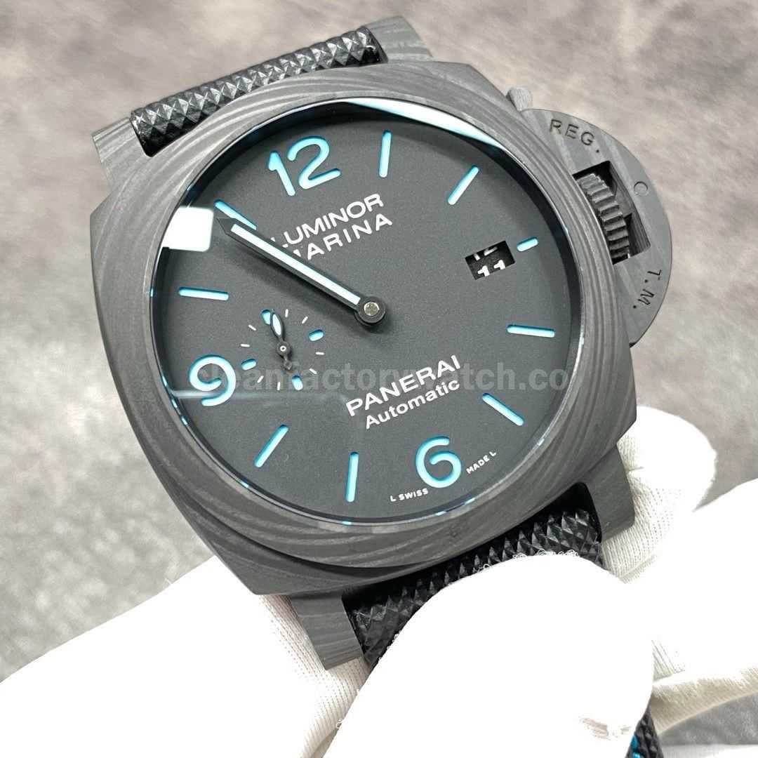VS Factory Panerai Luminor Marina PAM 01661 44mm Carbon Fiber Canvas Strap Black Dial