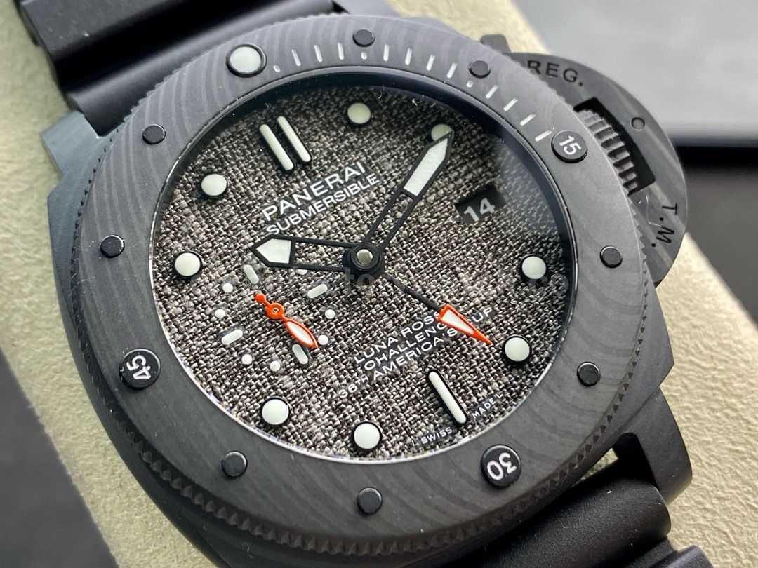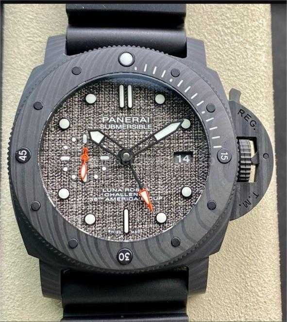 VS Factory Panerai Luminor Submersible Luna Rossa GMT PAM 01039 47mm Carbon Fiber Rubber Strap Grey Dial