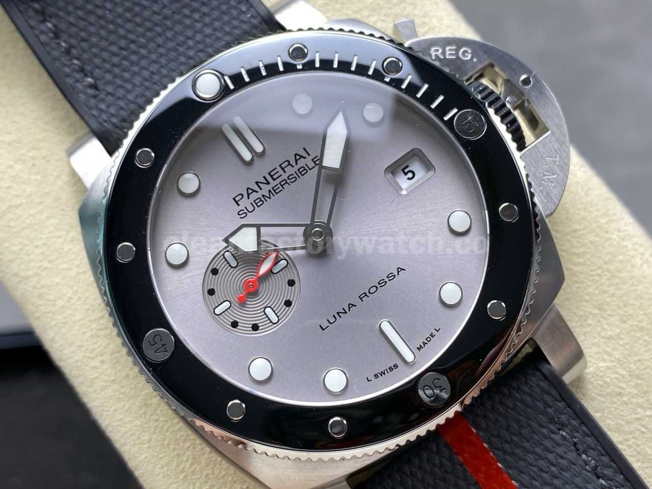 VS Factory Panerai PAM01681 Submersible QuarantaQuattro Luna Rossa 37th America’s Cup 44mm Steel Canvas and Rubber Strap Silver Dial