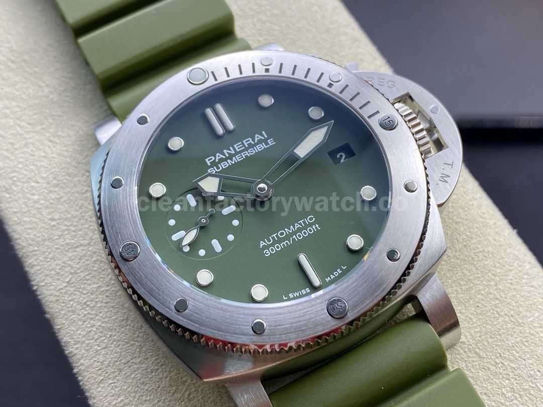 VS Factory Panerai Submersible PAM 01055 42mm Steel Verde Militare Green Rubber Strap Verde Militare Green Dial