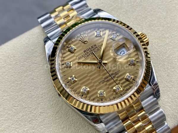 VS Factory Rolex Datejust 126233-0045 36mm Half Yellow Gold Diamond Fluted Motif Champagne Dial Jubilee