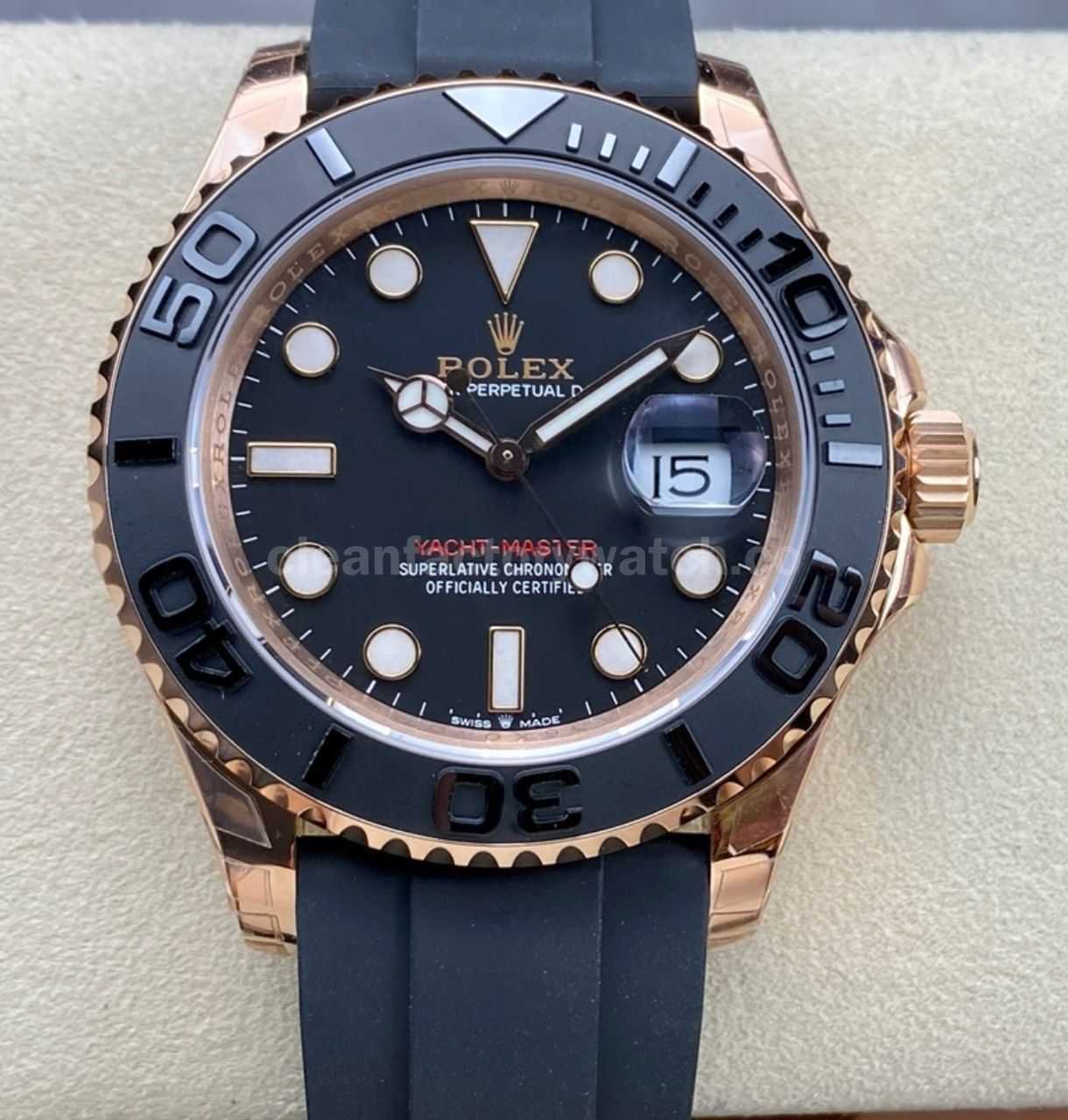 VS Factory Rolex Yacht-Master 126655 40mm Rose Gold Rubber Strap Black Dial