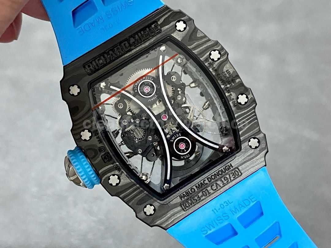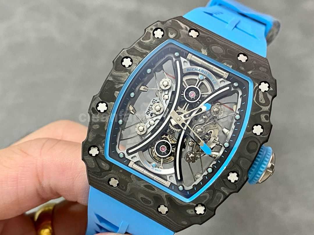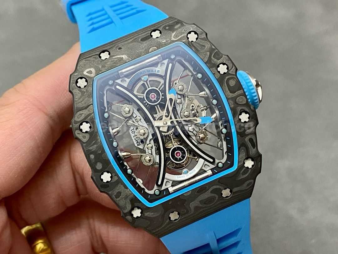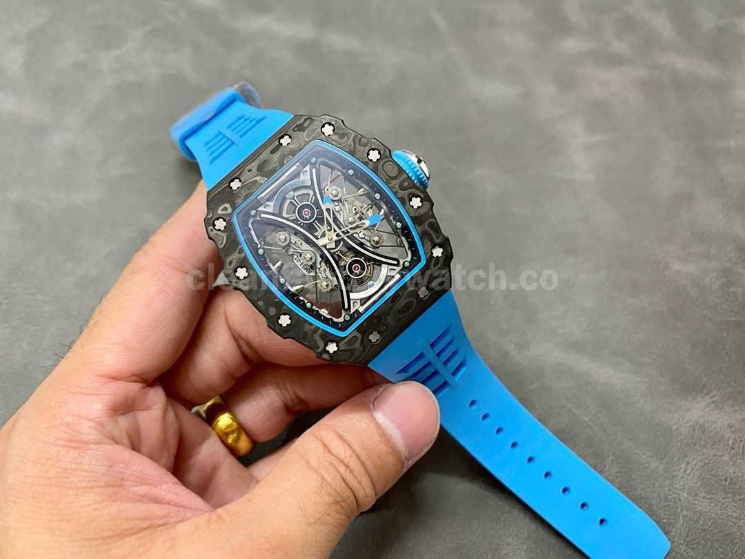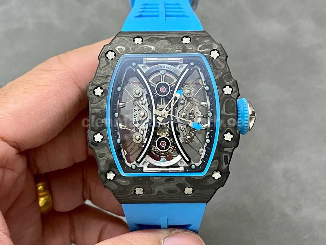 YS Factory Richard Mille RM 53-01 43mm Carbon Fiber Blue Rubber Strap Skeletonized Black Dial