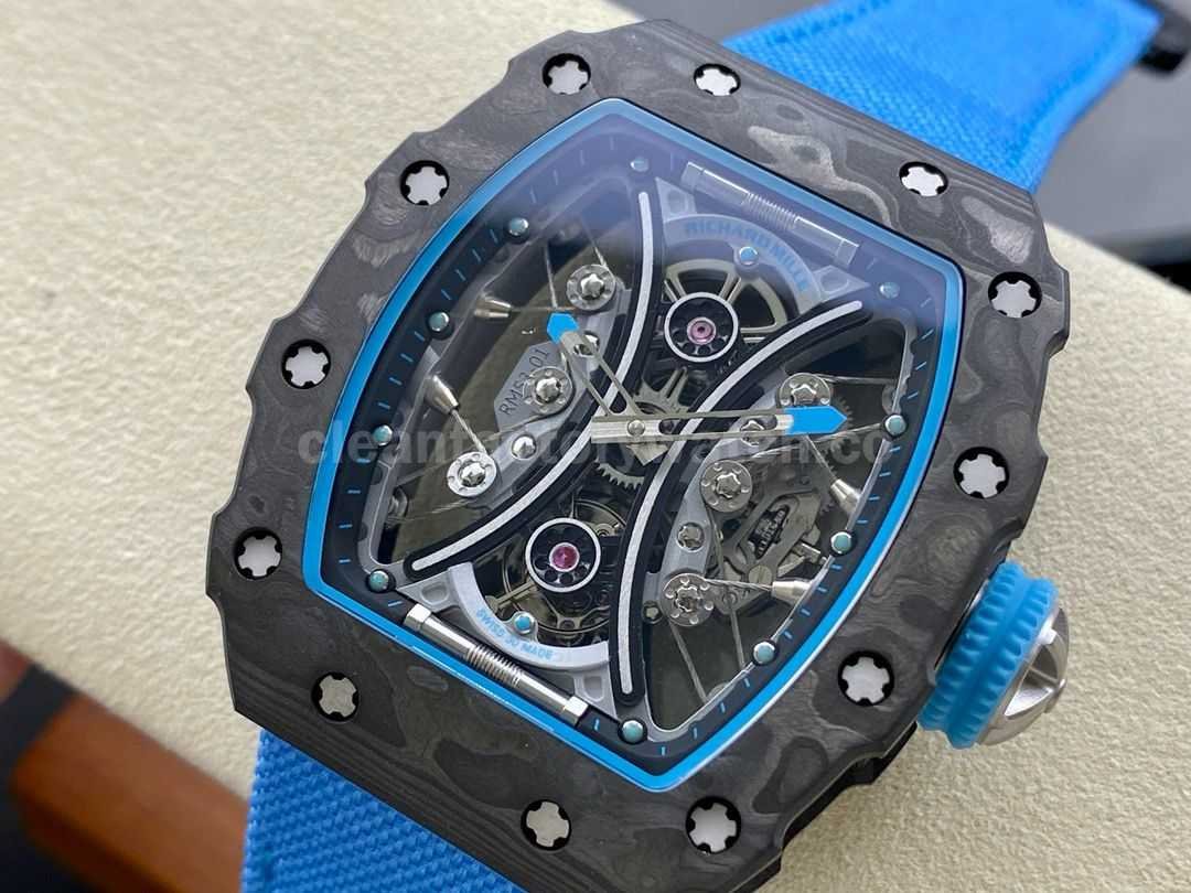 YS Factory Richard Mille RM 53-01 43mm Carbon Fiber Canvas Rubber Strap Skeletonized Black Dial