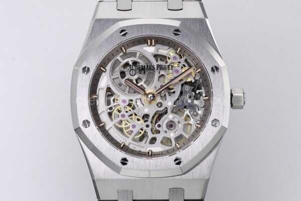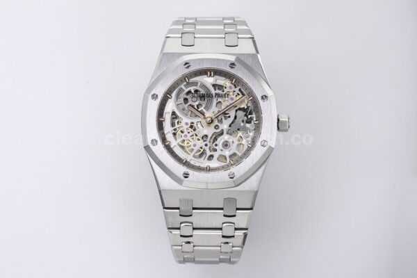 ZF Factory proudly presents the Audemars Piguet Royal Oak 16204, a faithful re-creation of the iconic skeleton timepiece. Combining the legendary octagonal design with an ultra-thin movement, this masterpiece represents the perfect harmony between luxury and precision watchmaking.