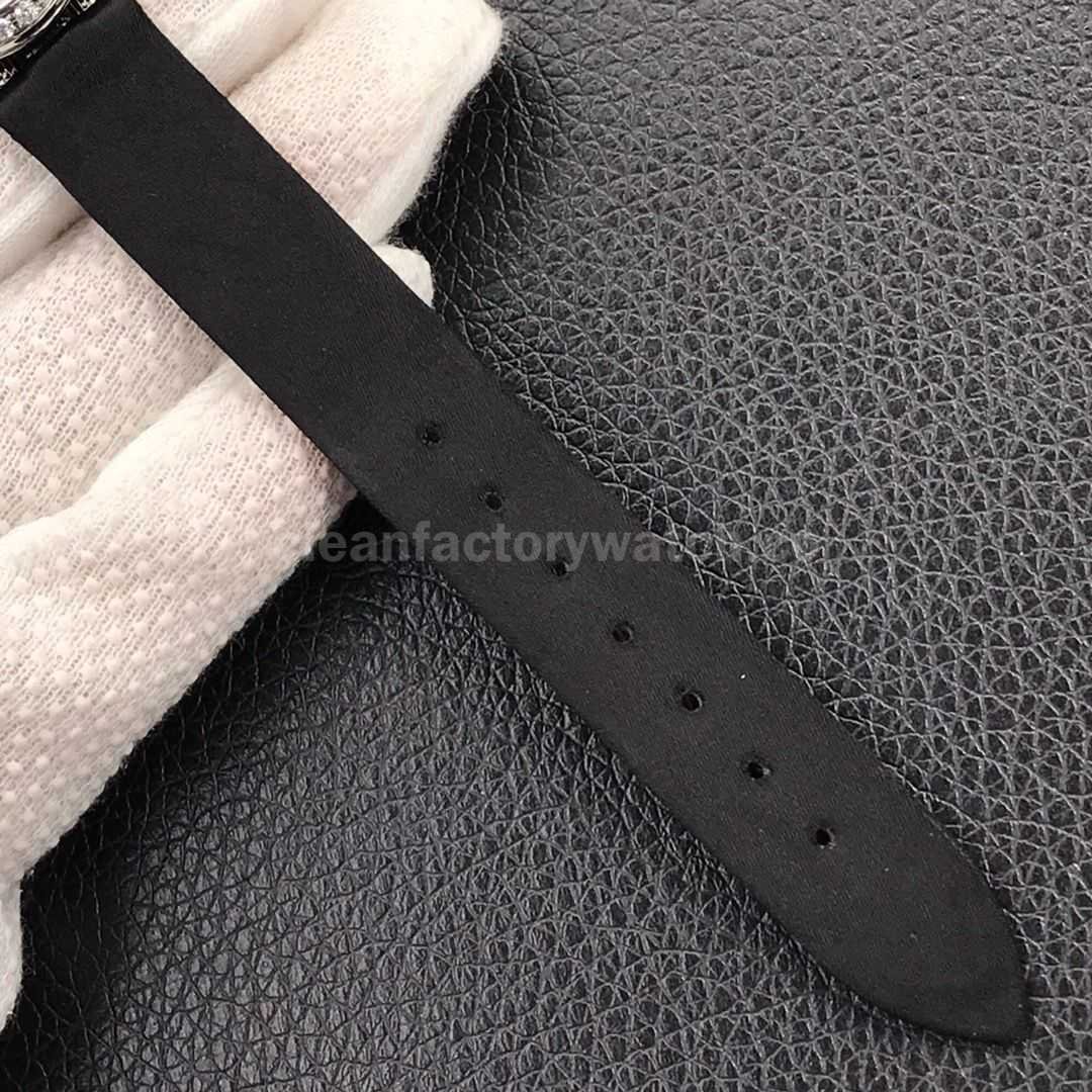 Silk-wrapped lambskin leather strap, offering a smooth and delicate feel for ultimate comfort.