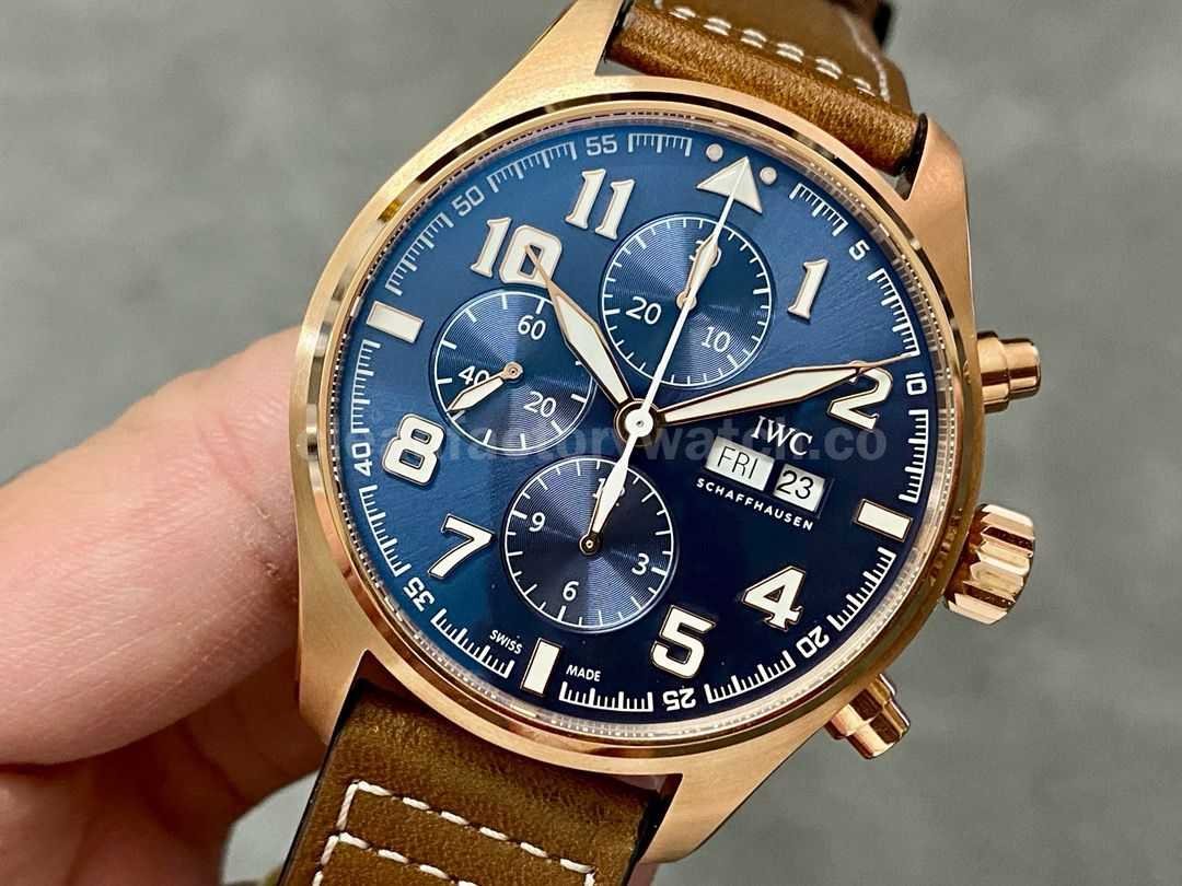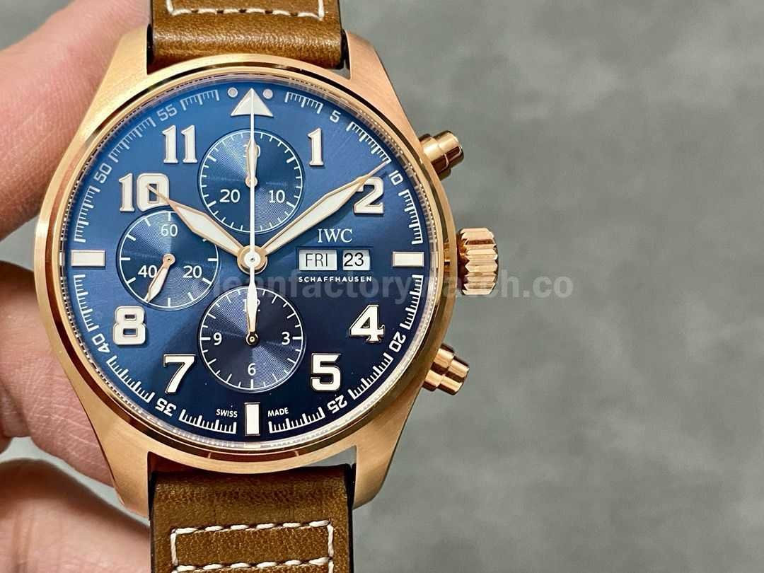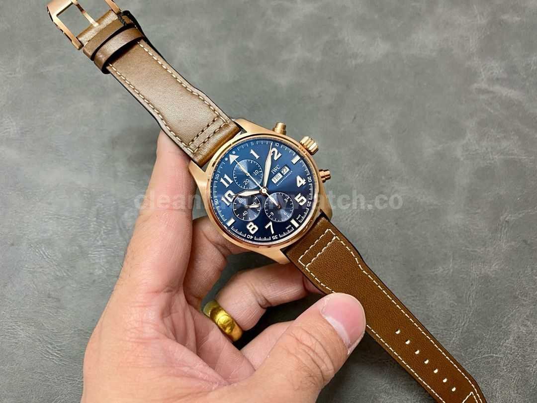 ZF Factory IWC Pilot Chronograph IW377721 43mm Rose Gold Leather Strap Blue Arabic Numerals Dial