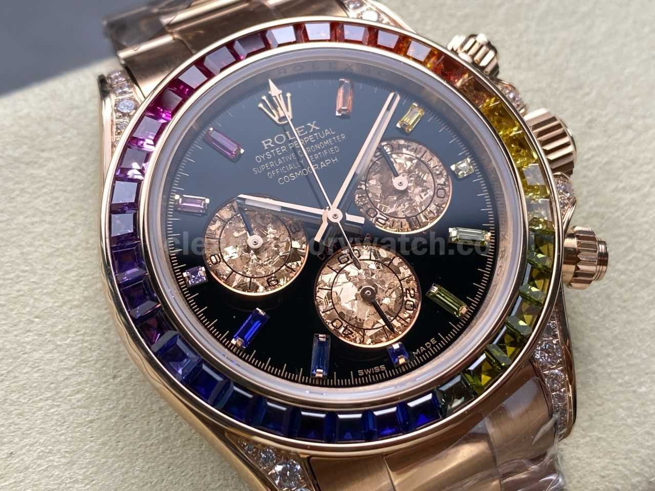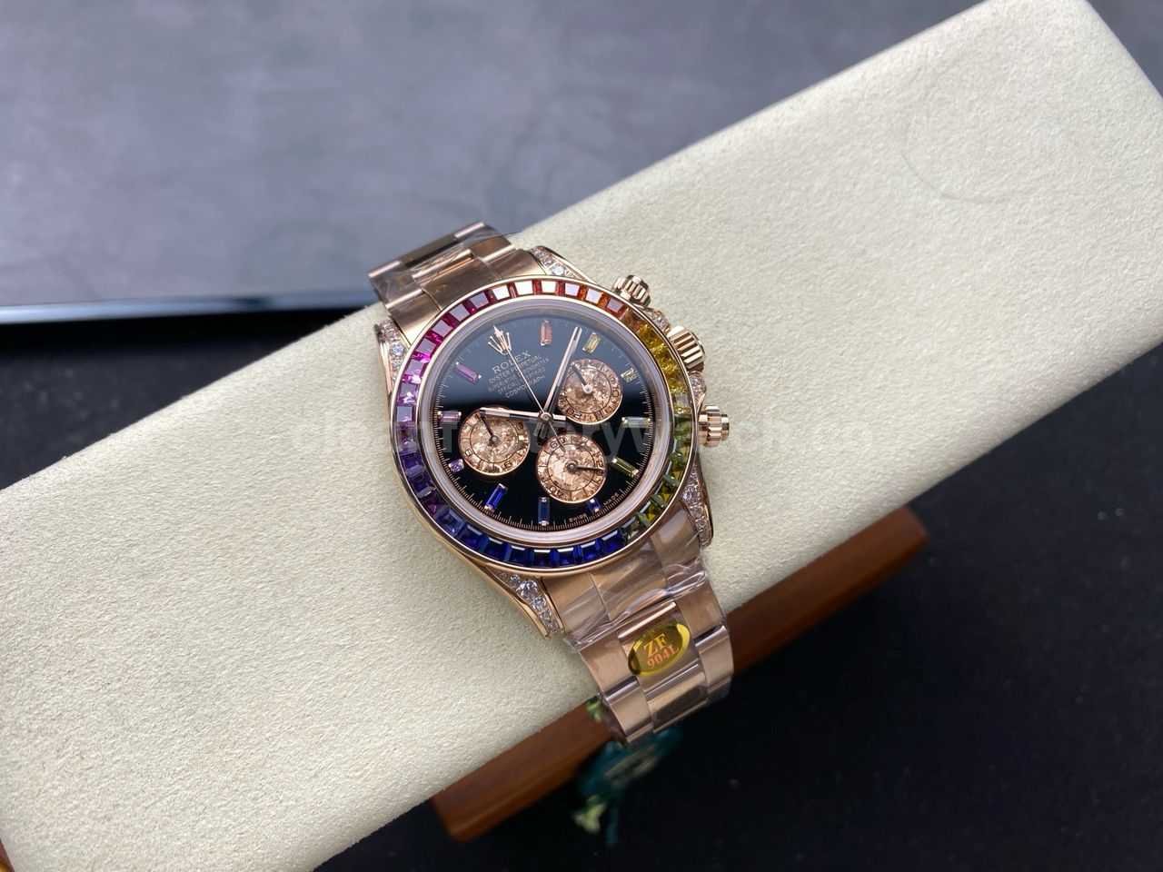 ZF Factory Rolex Daytona 116595RBOW 40mm Rose Gold Rainbow Bezel Diamond Black Dial