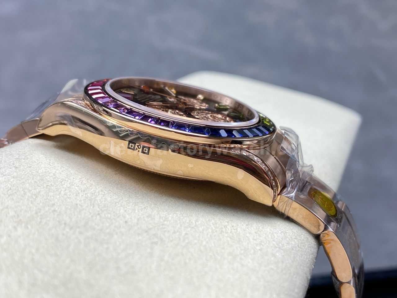Among all Rolex models, the Rainbow Daytona stands as a true legend. Its core allure lies in the rainbow gradient gemstone bezel, radiating brilliance in every hue. Committed to perfection, ZF Factory meticulously handpicked 36 gemstones from tens of thousands of natural stones, ensuring the smoothest and most harmonious color transitions to recreate this iconic rainbow arc.