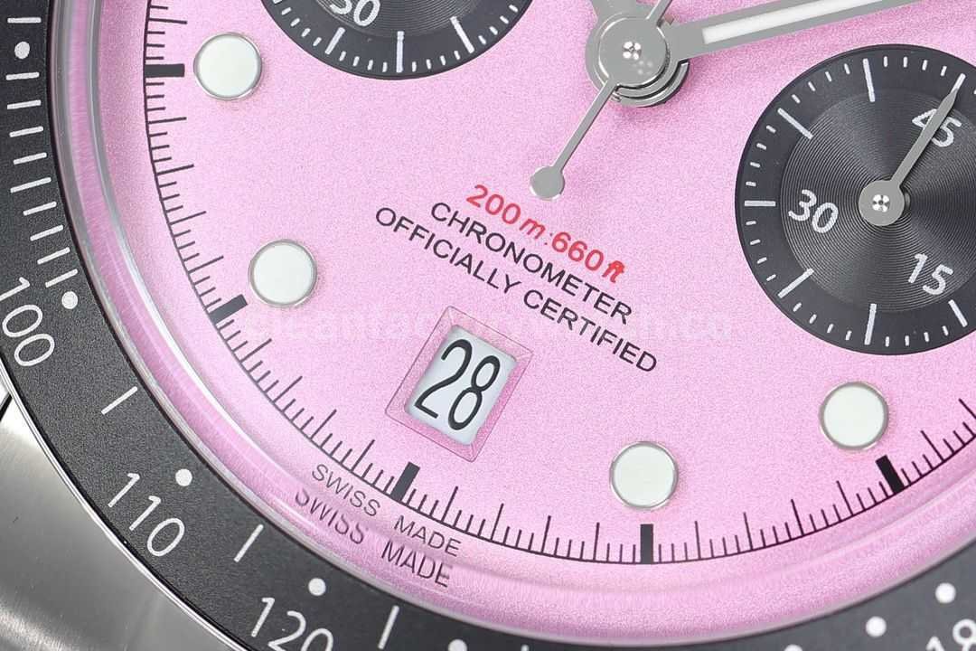 • Fitted with a black anodized aluminum tachymeter bezel, showingcasing sporty aesthetics and excellent texture