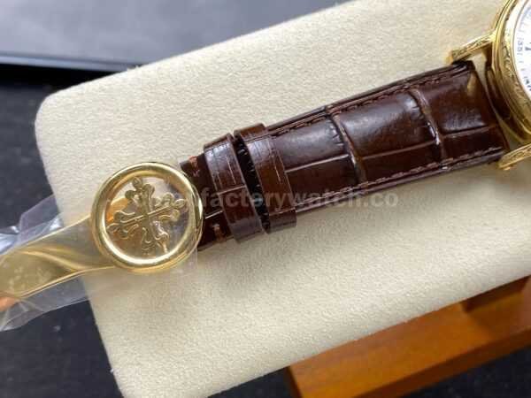 ZM Factory Patek Philippe Perpetual Calendar 5159 38mm Engraving Yellow Gold Leather Strap White Dial