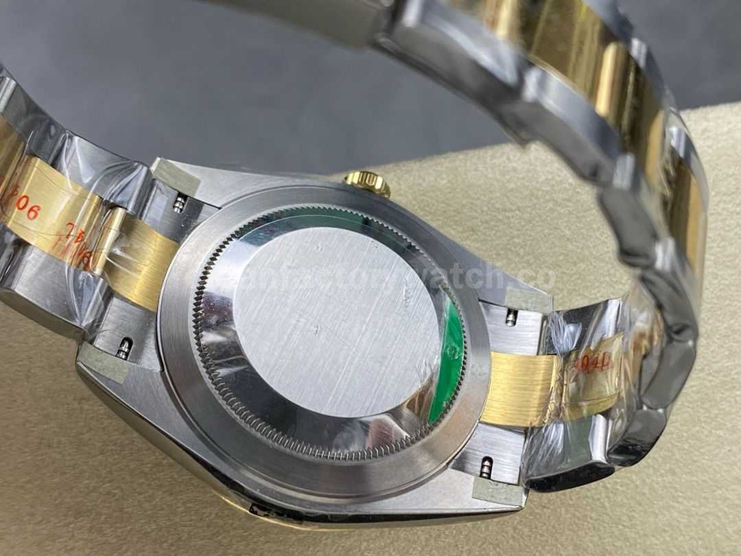 The watch is constructed with imported 904L stainless steel. The two-tone bracelet’s gold center links are crafted with precision, perfectly matching the original design without side gaps or white edgesβ€”far superior to most replicas in the market.