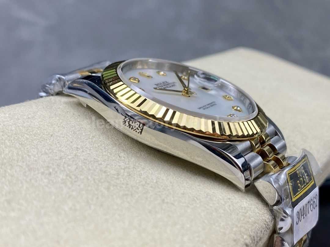 The watch is constructed with imported 904L stainless steel. The two-tone bracelet’s gold center links are crafted with precision, perfectly matching the original design without side gaps or white edges—far superior to most replicas in the market.