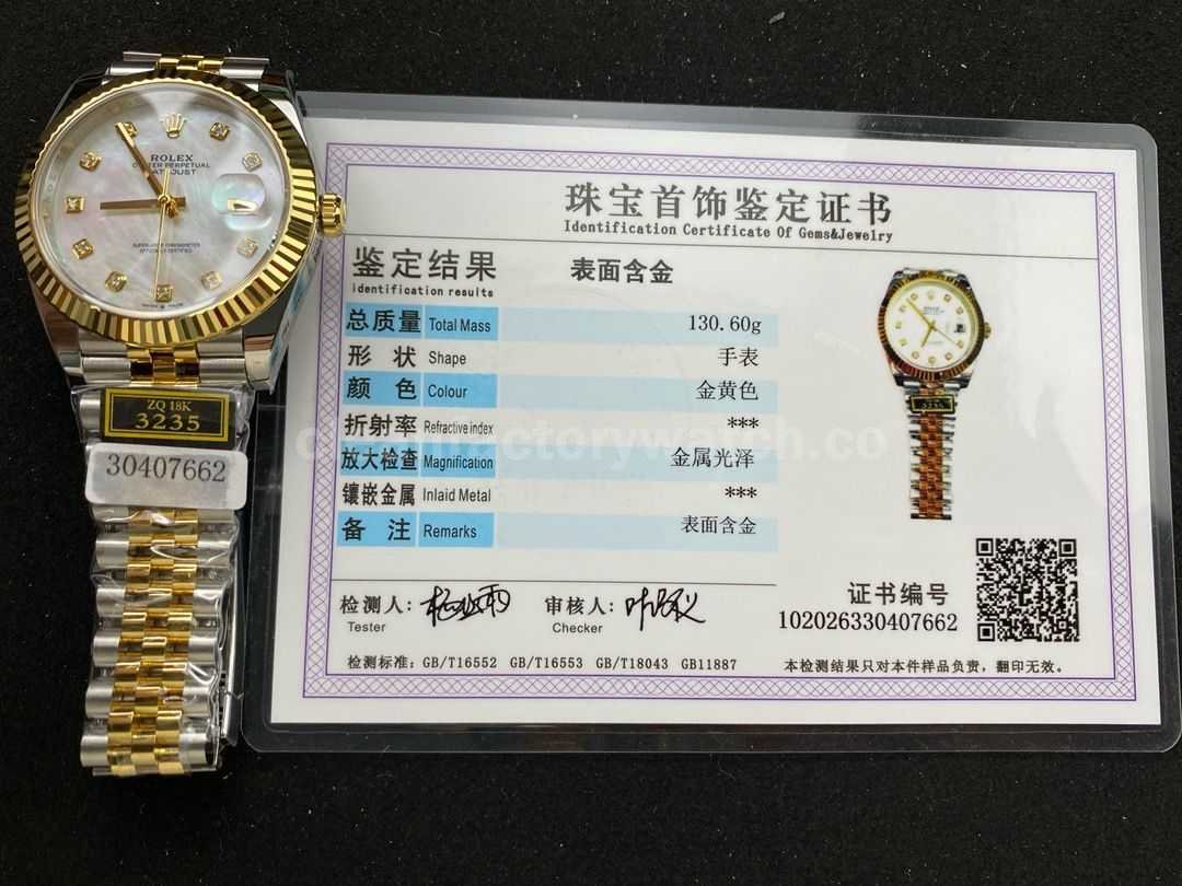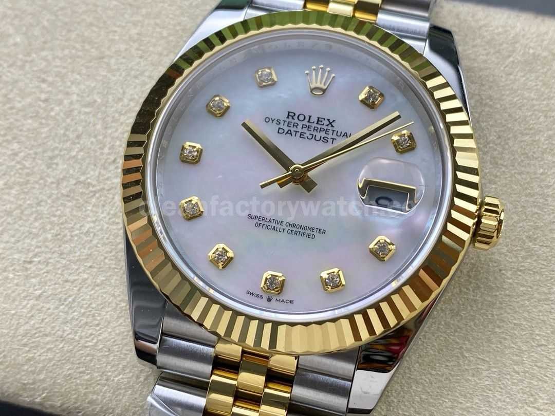 ZQ Factory Rolex Datejust 126333-0018 41mm Half Yellow Gold Diamond Mother Of Pearl Dial Jubilee