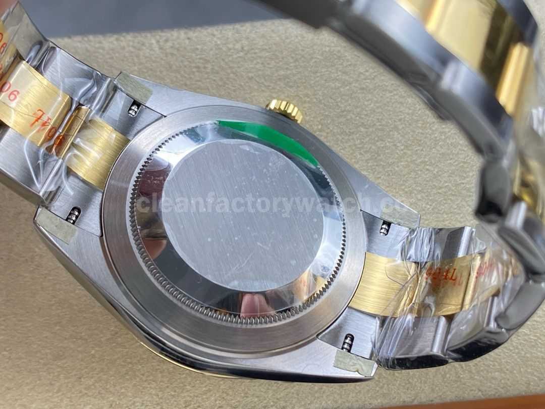The watch is constructed with imported 904L stainless steel. The two-tone bracelet’s gold center links are crafted with precision, perfectly matching the original design without side gaps or white edges—far superior to most replicas in the market.