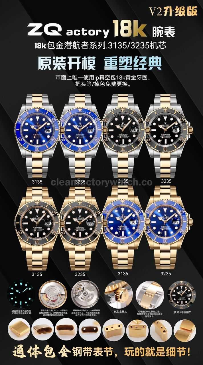 ZQ Factory proudly presents the 18K Gold-Plated V2 Upgraded Rolex Submariner 40mm, a masterpiece that redefines craftsmanship, materials, and movement performance in the replica watch industry.